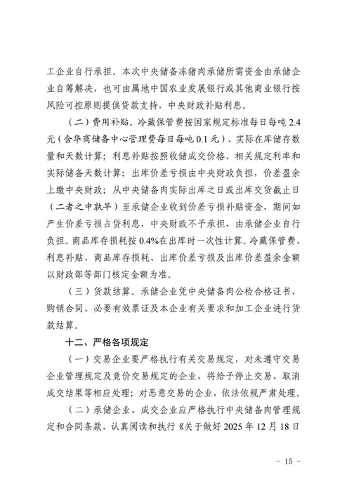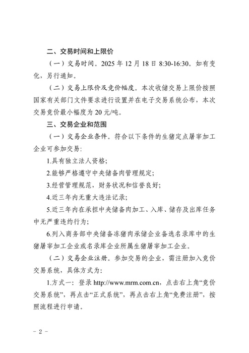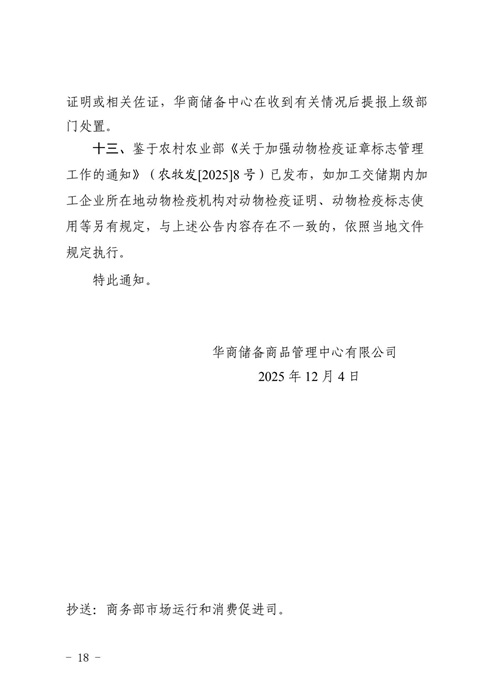 關于2025年12月18日中央儲備凍豬肉(西藏地區庫點)輪換收儲競價交易有關事項的通知